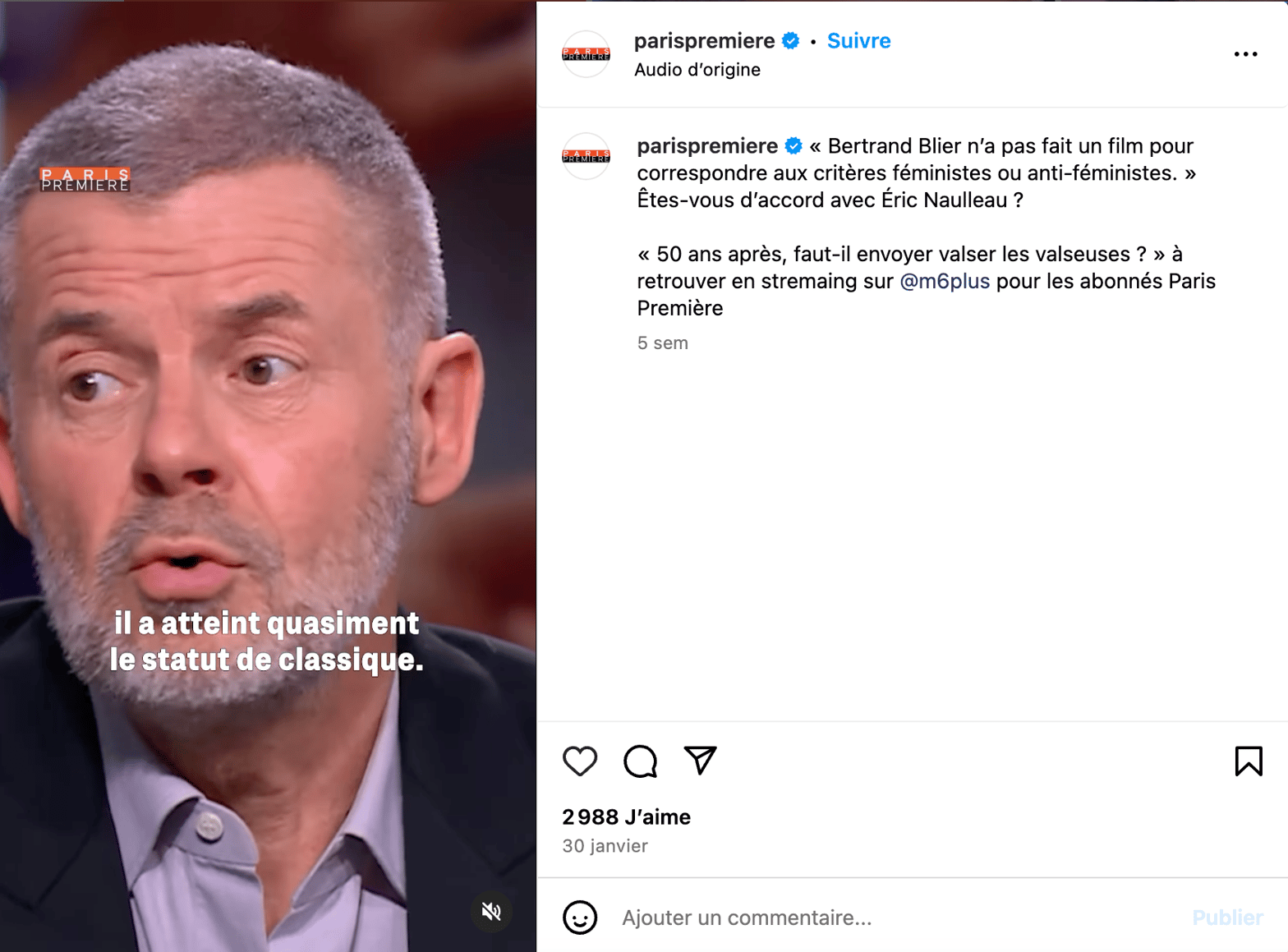 Avec Laurène Marx, on bosse sur un projet de podcast de critiques culturelles. On s’est dit que ce serait une bonne idée de regarder Les Valseuses. Laurène connaît bien ce film, c’était même une référence pour elle plus jeune. Moi, je ne l’avais jamais vu. Et franchement, ça me fait réaliser que parfois, le manque de culture, ça protège.