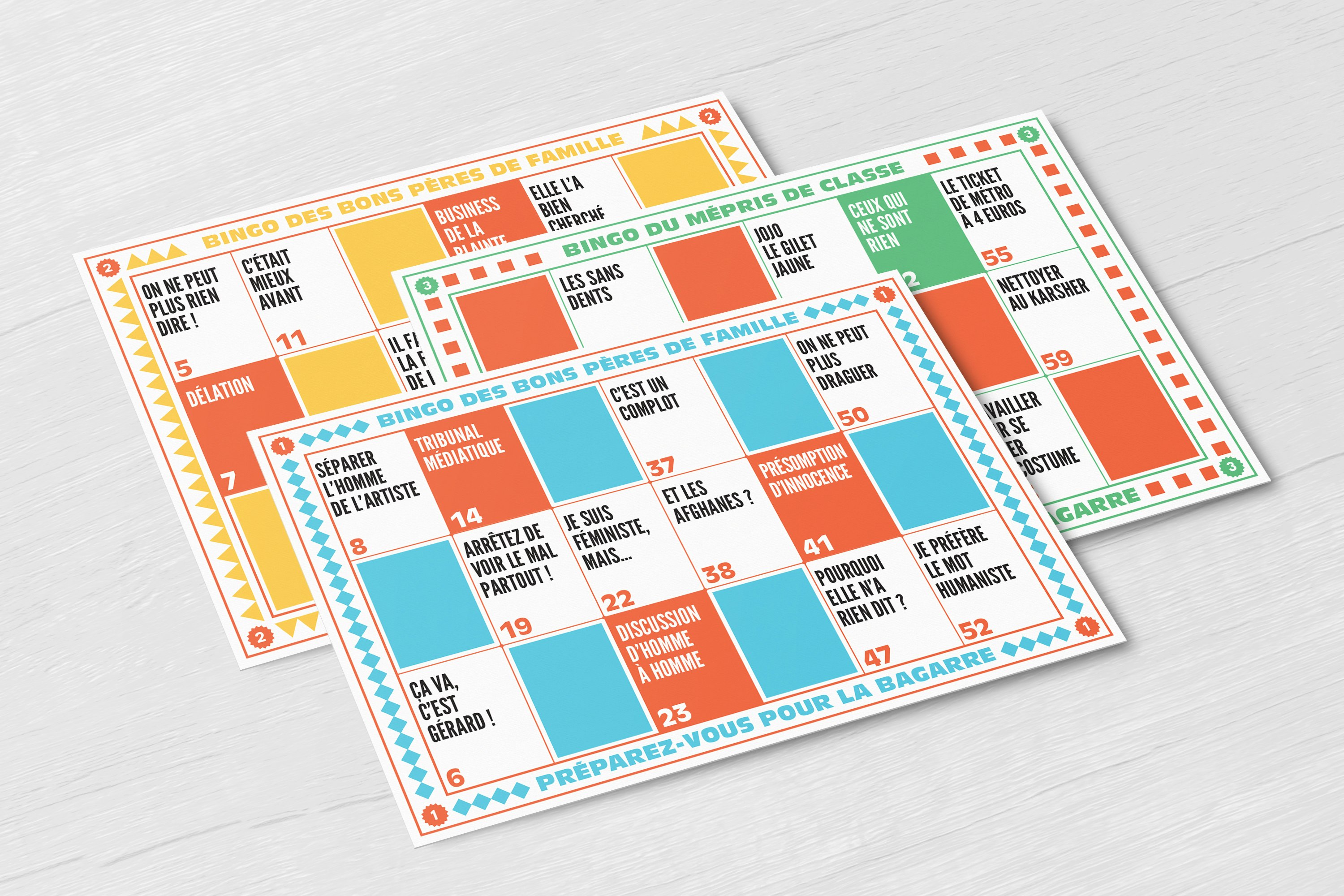 Avant de commencer, petit rappel promo pour celles et ceux qui n’auraient pas suivi. J’ai sorti un Bingo des Bons pères de famille et du mépris de classe dans les médias en collaboration avec Anaïs Bourdet de Mauvais Cie. On a lancé des précommandes pour se faire une idée du nombre de cartons à fabriquer.